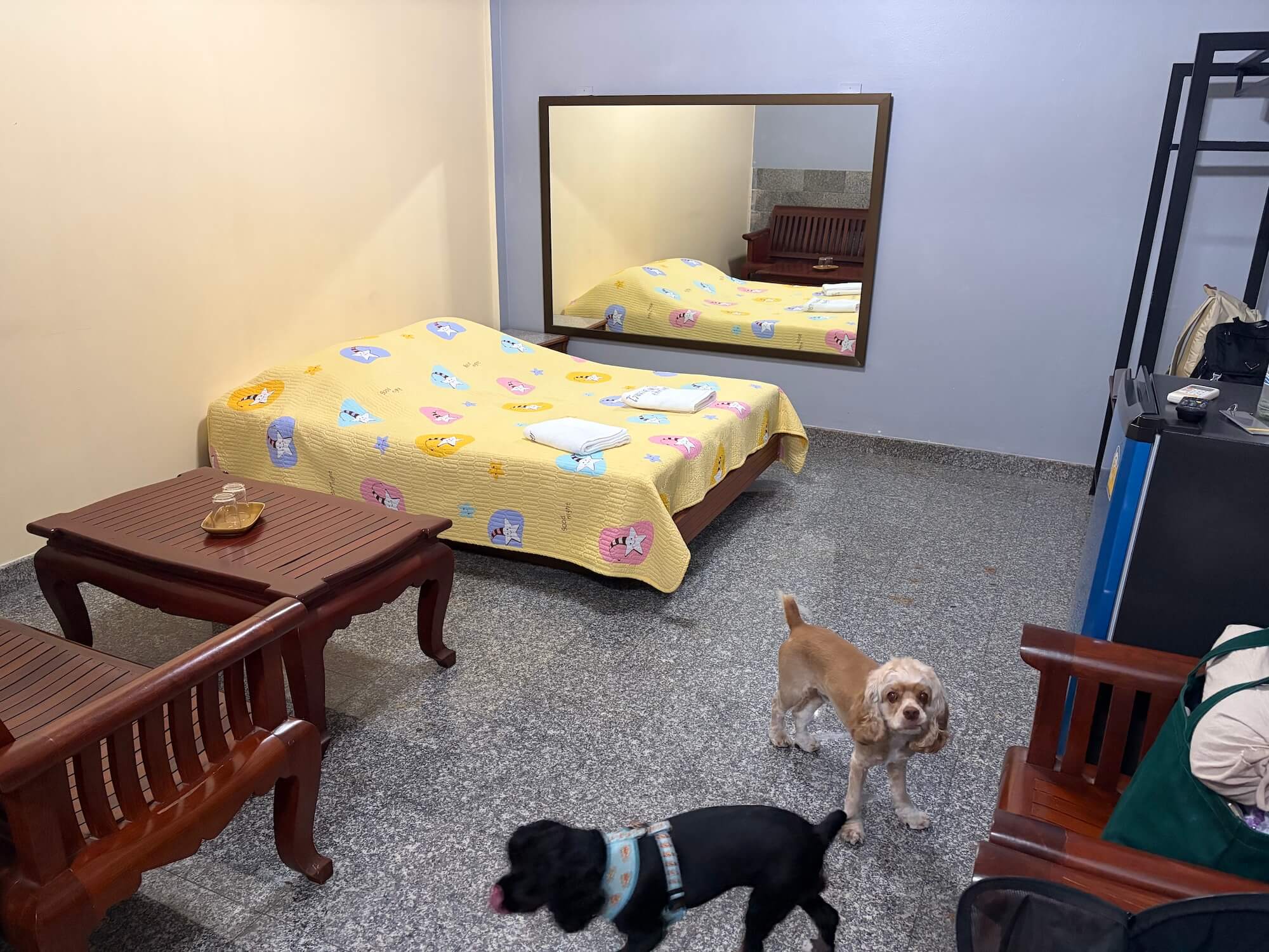 I stayed here with my wife and our two dogs (8 kg each). The rate was 650 baht per night. There are some dog-friendly hotels on Airbnb, but this hotel is much cheaper.