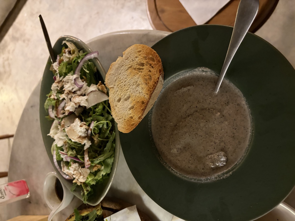 20:45 Bolognese Spaghetti, Pumpkin Soup, Italian Salad (Onion, Cucumber, Olives, Tomato, Lettuce), Bread