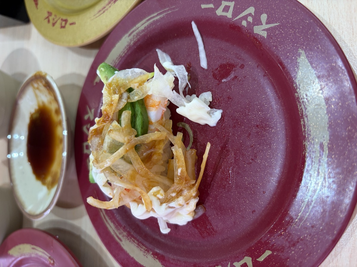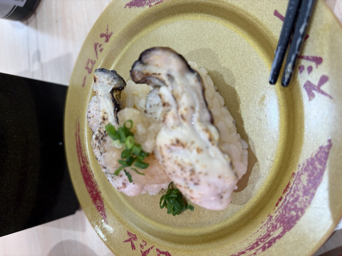 15:00 Sushiro (conveyor sushi): Negitoro Gunkan × 2, Tempura Salad Roll × 1, Aburi Seafood nigiri (salmon + oyster) × 1, Aburi Salmon Nigiri × 2, Udon with Clams + Wakame + Kamaboko, Sweet Potato Tempura