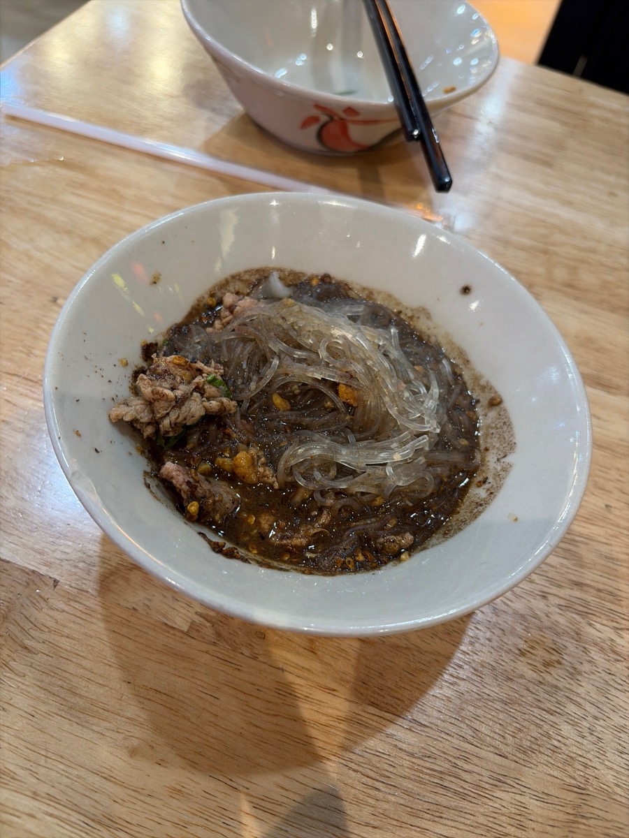 20:55 Thai Glass Noodles (vermicelli ~150g) with ground pork in spicy chili oil (local nurdle)